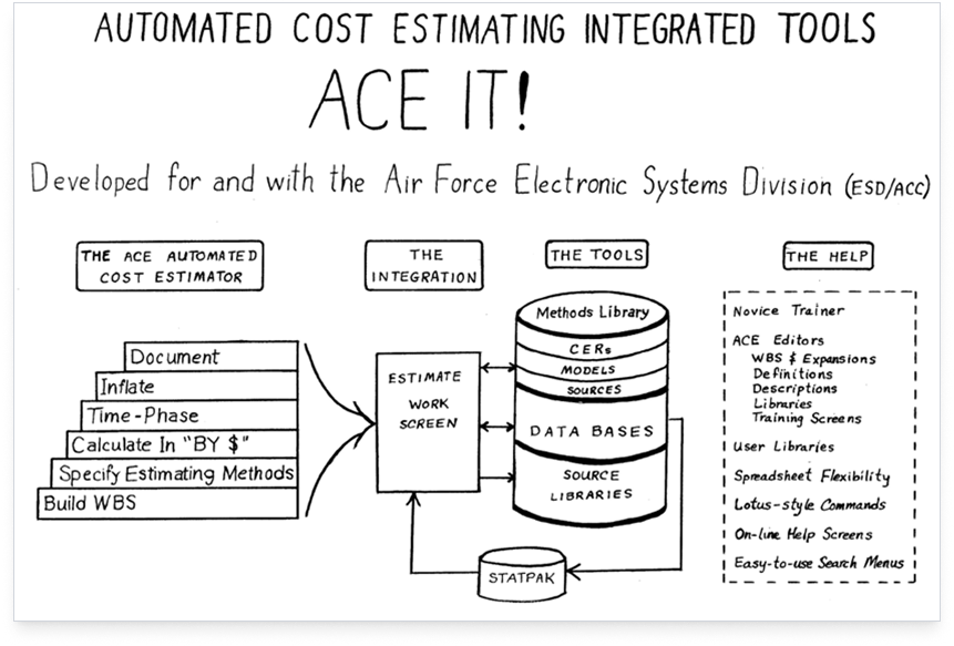 ACEIT is a Tecolote Research Inc. software vision originally developed for and with the Air Force Electronic Systems Division. Since the 1980’s ACEIT has been designed to provide a standardized framework to support estimating processes for US Government and other organizations. ACEIT helps cost analysts to follow established best practices with analysis, model development, uncertainty and reporting.